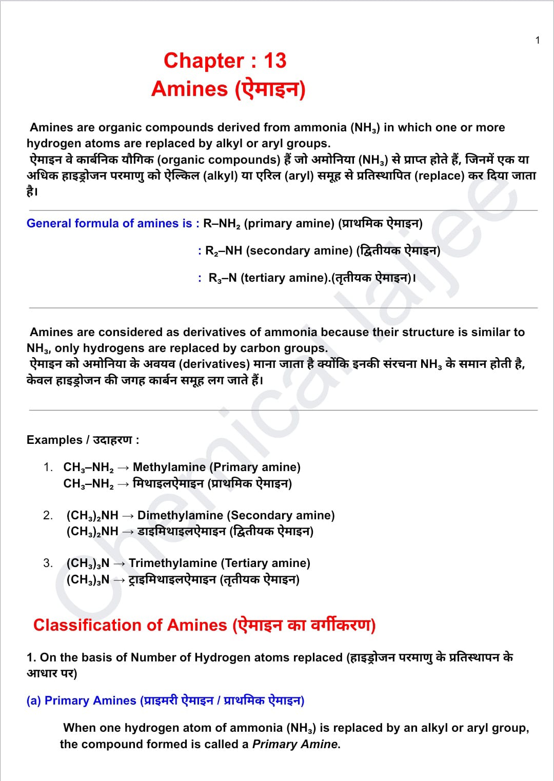 “Class 12 Chemistry Chapter: Amines notes with preparation, properties, important reactions & NCERT solutions – Instant PDF Download after payment.”