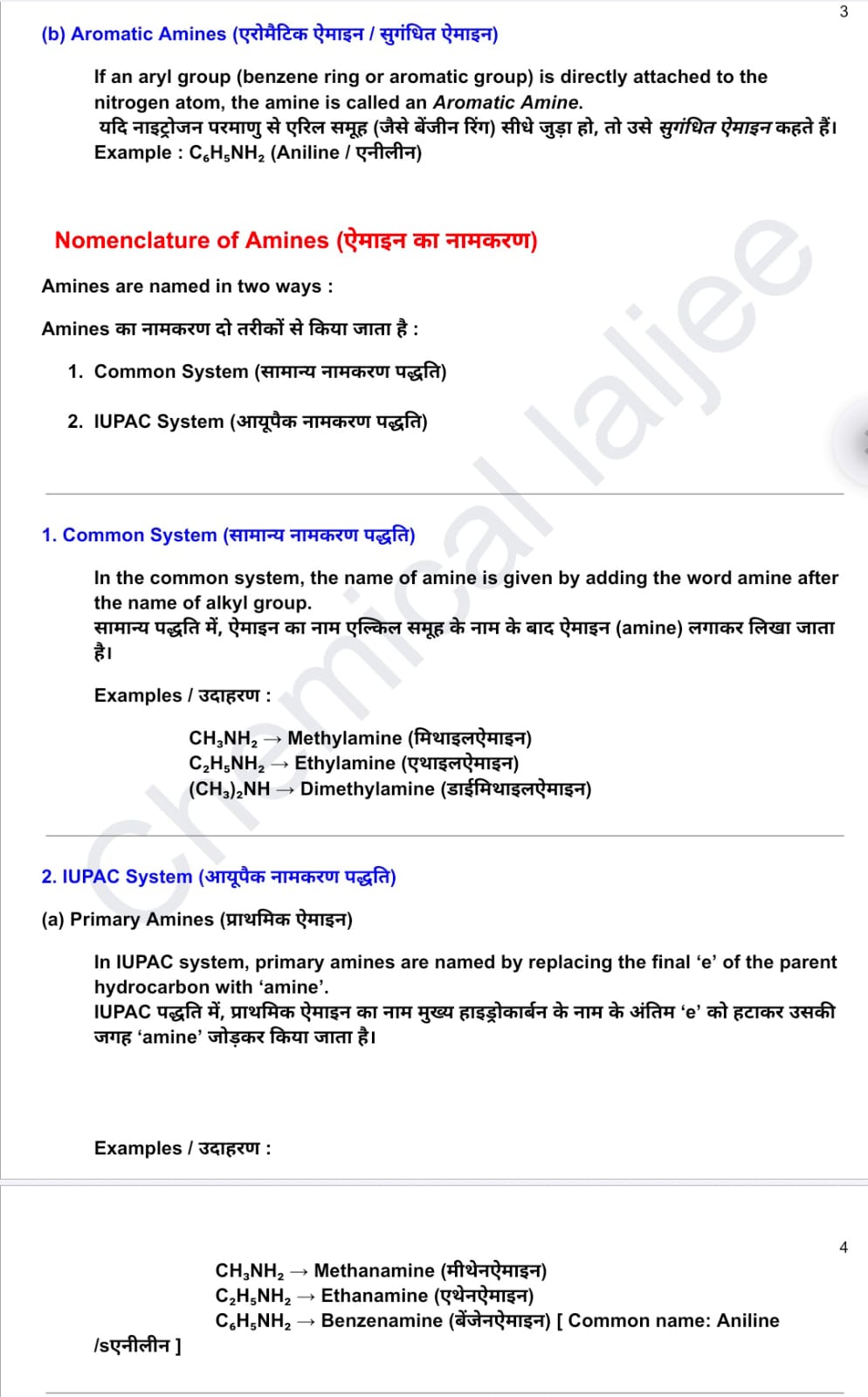 Classification & Nomenclature of amines (primary, secondary, tertiary)
